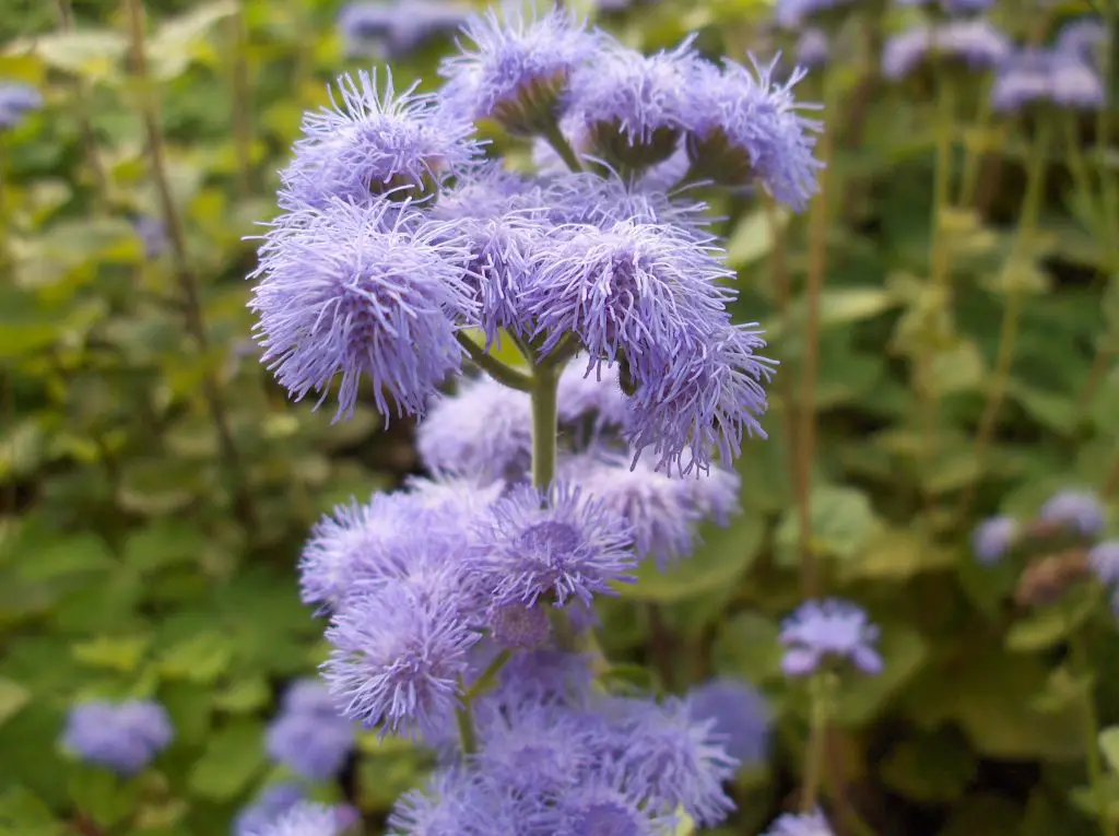 Ageratum is known for its antibacterial properties. It has been used to treat rheumatism, spasms, diarrhea, colds, fevers and external wounds.