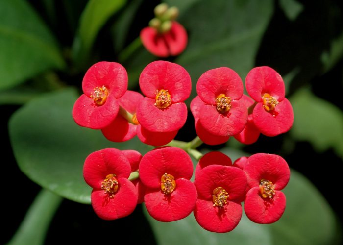 The genus is very diverse and includes species with very different characteristics. It contains annual and perennial herbs, as well as shrubs and trees species that can reach 20 meters in height, many of which are succulents and very drought tolerant. Spurges are popular for their unique floral structures – handsome, richly colored leaves and unusual flowers aggregated into an inflorescence or cluster of flowers known as a “cyathium”.
